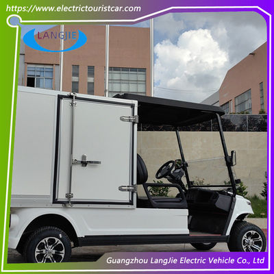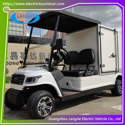 2 ที่นั่งกอล์ฟคาร์ต ขาวรถบรรทุกไฟฟ้า รถบรรทุกไฟฟ้า ด้วยเครื่องยนต์ AC 48V และกล่องสินค้าสําหรับโรงงาน